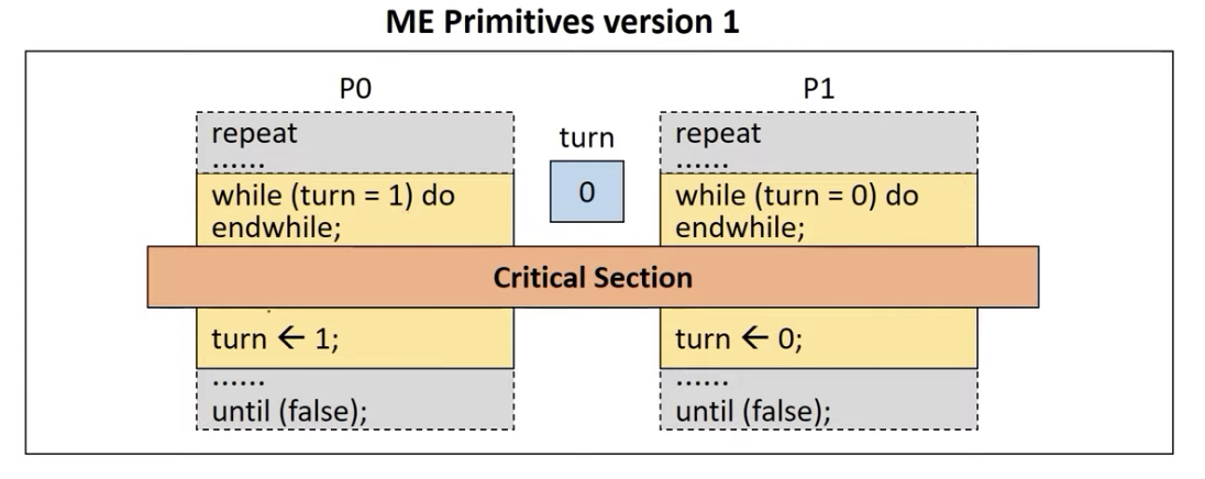 - 한 프로세스가 임계 구역에 진입했다면 다른 프로세스는 임계 구역에 들어올 수 없게 하는 것을 말함